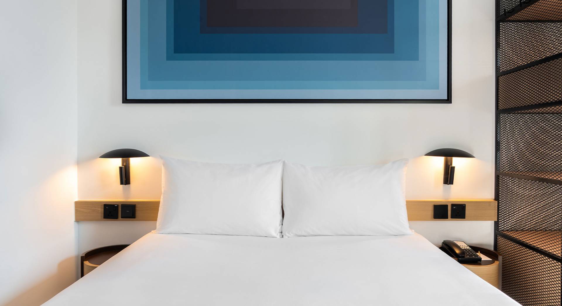 This contemporary hotel room is just right for singles or couples.